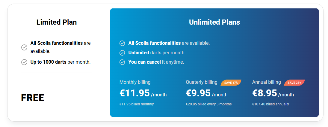- The Unlimited Plan subscriptions of the Scolia Home FLEX boards correspond to the Scolia systems themselves and not the users. Once a Scolia Home FLEX system is upgraded to Unlimited Plan, it can be used by any number of users for an unlimited number of throws.
