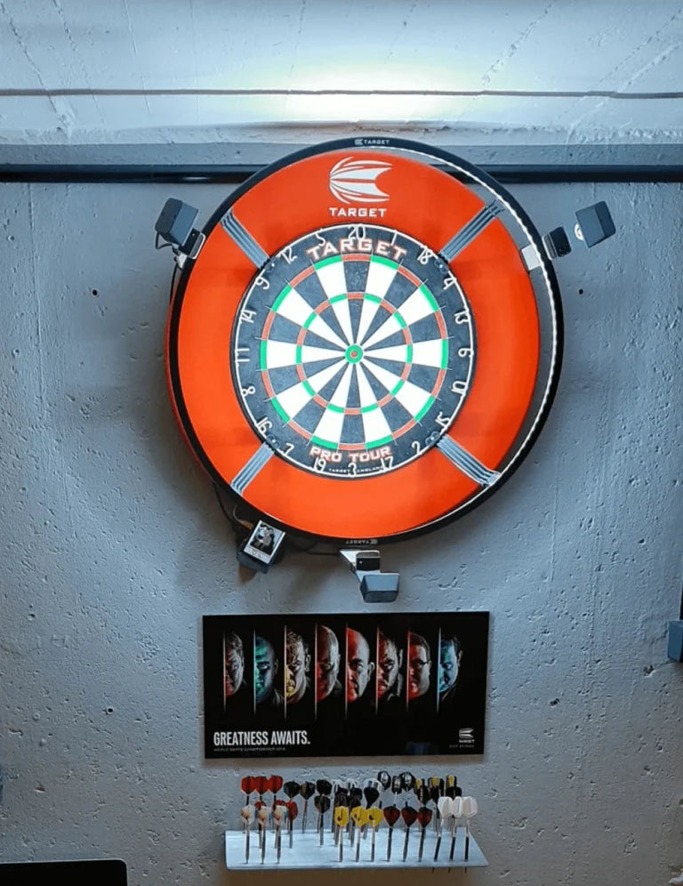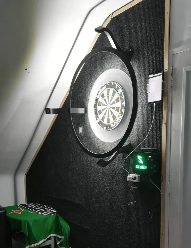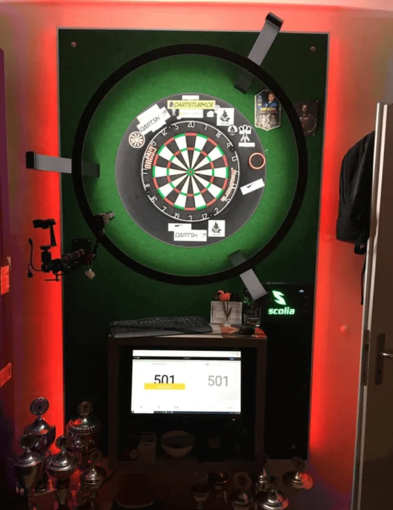 - For the Pro system, you need a solid wall (preferably brick or concrete) with a flat surface around the dartboard of 140 cm in width and 110 cm in height (see the image below). In addition to that, you also need power and cable internet access nearby to connect Scolia to the network. For detailed instructions, read our step-by-step installation guide or watch our assembly video.